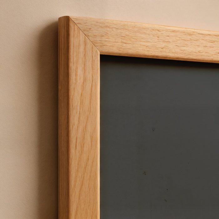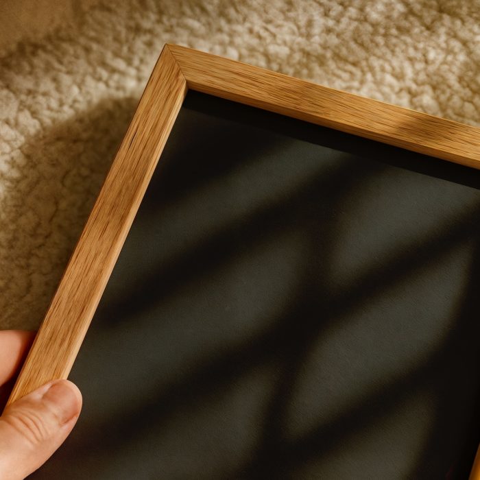 Ahşap çerçeve + bej duvar → doğal ve sıcak kontrast