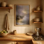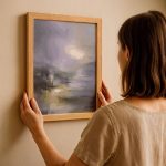 Ahşap çerçeve + bej duvar → doğal ve sıcak kontrast