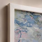 • Minimalizm, empresyonizm, art nouveau, barok ve realizm tarzlarında beş çerçeveli özel tasarım tablolar, ahşap zeminde yatay dizili
