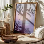 Ahşap çerçeve + bej duvar → doğal ve sıcak kontrast