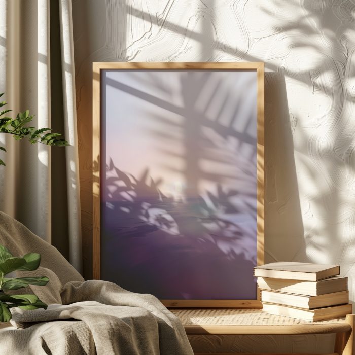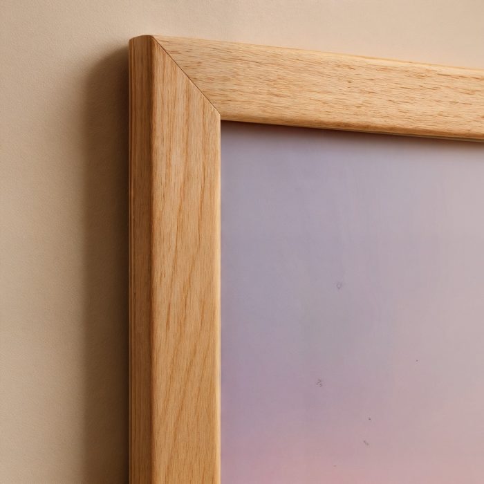 Ahşap çerçeve + bej duvar → doğal ve sıcak kontrast