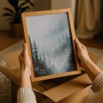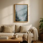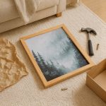 Ahşap çerçeve + bej duvar → doğal ve sıcak kontrast