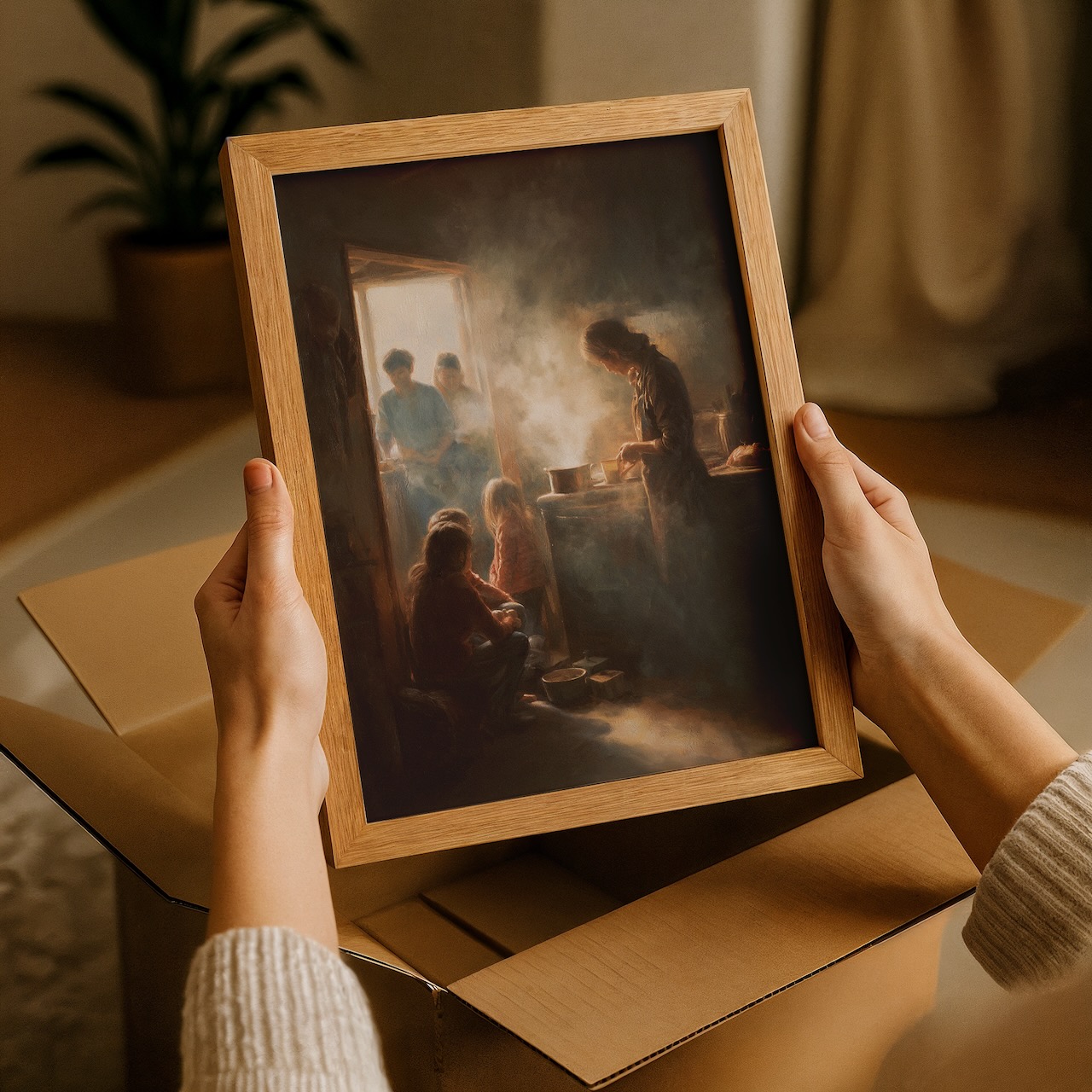 Sabahın İlk Nefesi tablosu, izleyeni anında köy yaşamının o duru ve dingin atmosferine taşıyor. Çayın buharının doğal ışıkla birleşimi, izleyiciye adeta bir meditasyon anı sunuyor. Bu eser, her günün taze bir başlangıç olduğuna dair içsel bir hatırlatıcı gibi duruyor. Karmaşadan uzaklaşıp, basitliğin ve doğanın gücünü hissetmek isteyenler için bu tablo olmazsa olmaz bir parça.