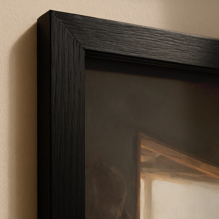 Siyah çerçeve + beton doku duvar → modern galeri atmosferi