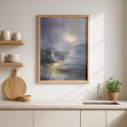 Ahşap çerçeve + bej duvar → doğal ve sıcak kontrast