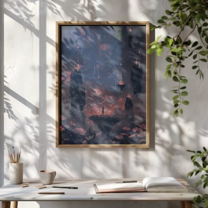 Siyah çerçeve + beton doku duvar → modern galeri atmosferi